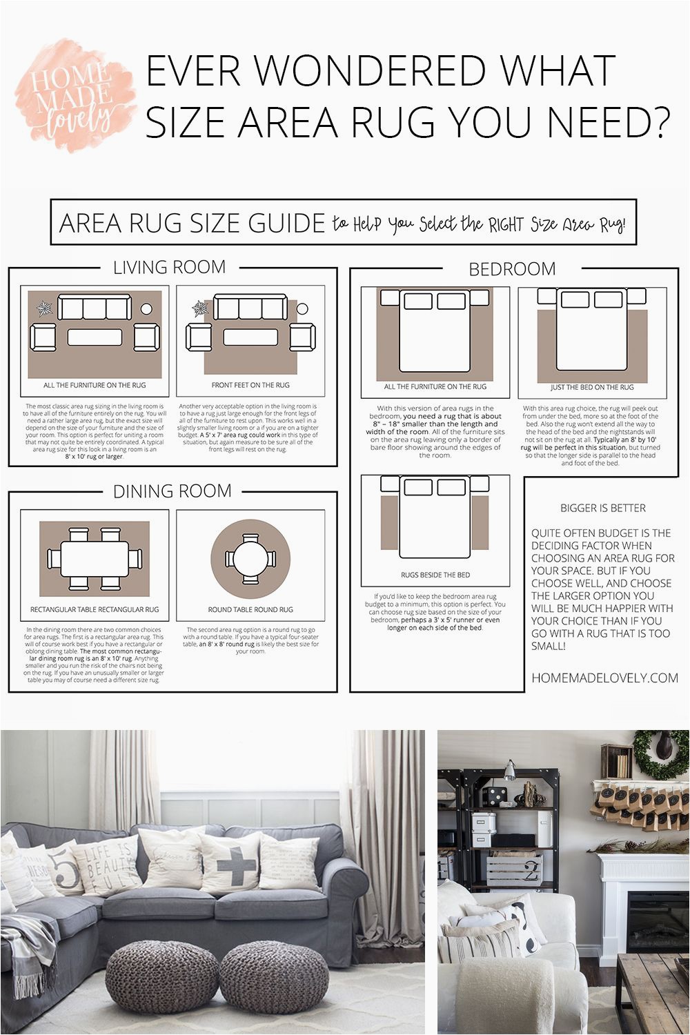 how to correctly place an area rug in the living room loloi explains that the ideal size for a queen bed is an 8 by 10 while a king would look better with a 9 by 12 rug and that same size works for two twin beds in a kids room for a full a
